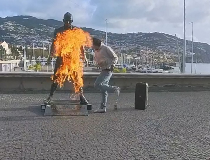 此前,一名男子点火焚烧位于丰沙尔海洋大道CR7博物馆旁的C罗雕像,并在起火的雕像旁跳舞,随后他将录下来的视频发上社交媒体。